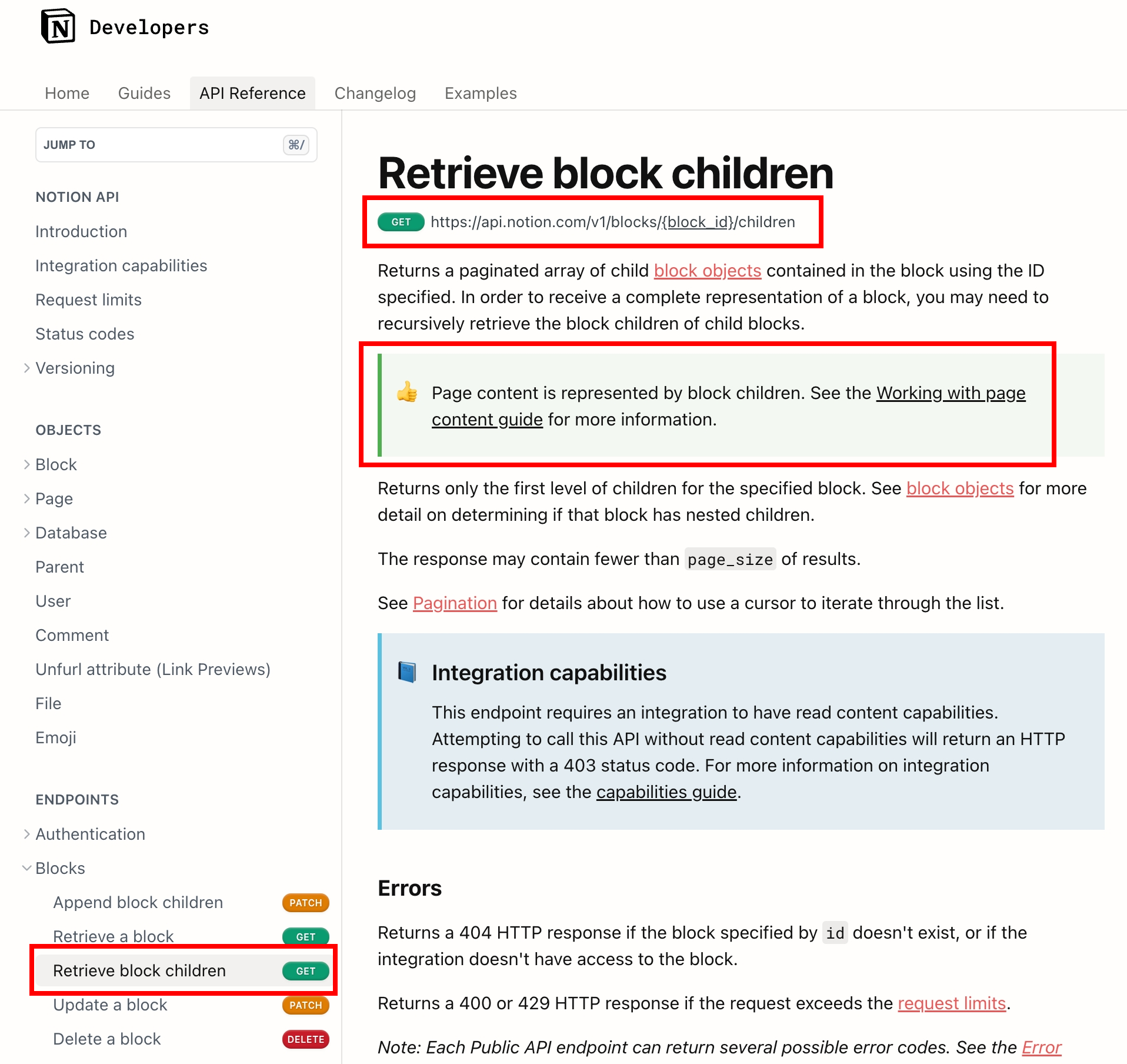 獲取 database Properties 後,接下來我們想取得 Notion Page 內容,這必須使用 Retrieve block children 功能。