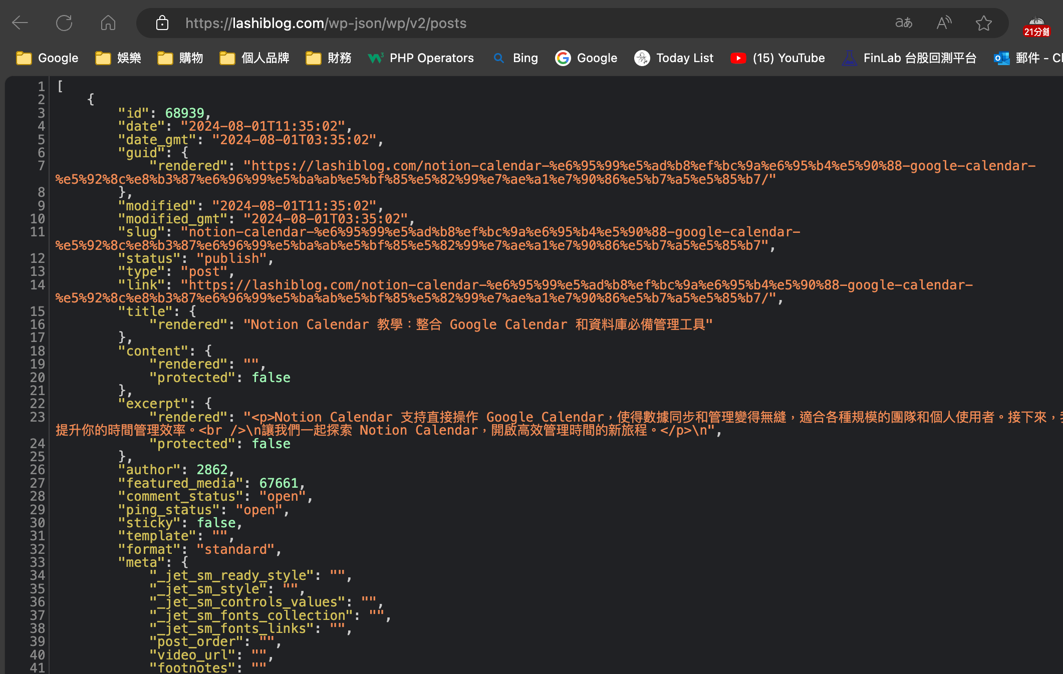 如果 REST API 正常運作的話,應該看得到文章的資訊,如果失敗的話,有些主題或插件可能會限制 REST API 的功能。檢查是否有安裝任何可能會影響 REST API 的插件,例如安全性插件可能會禁用 API 端點。