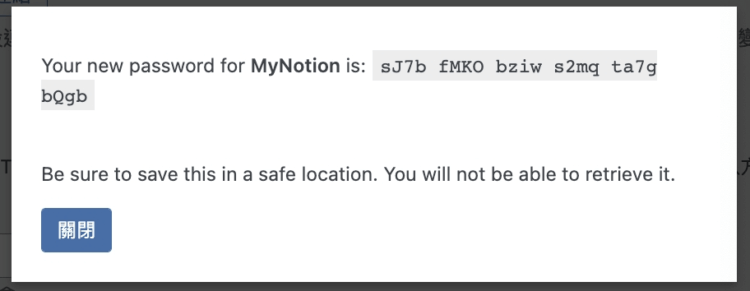 ▼ 請將反白的密碼複製下來,貼到個人頁面的 「WordPress App Password」中。