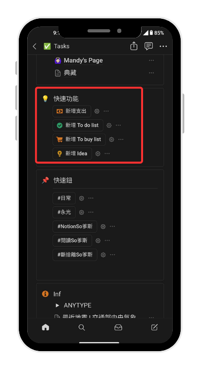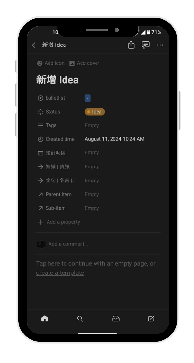這確實是 Notion 一個比較大的缺點:「手機版的速度太慢」;所以使用手機的 Notion APP 做閃念筆記,不是太方便,而且使用上的體驗不是太好。