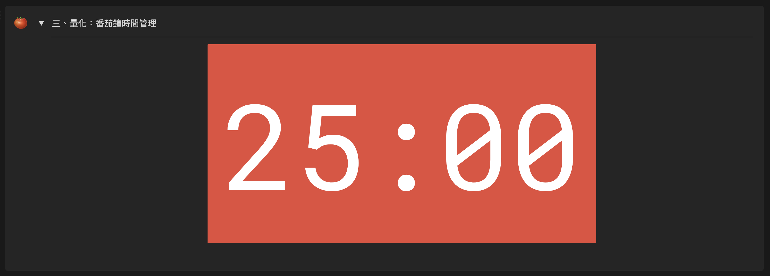 接著,建議大家需要專注時間的時候,打開番茄鐘,現在專注的 APP 或是方式很多,就算是使用 Notion 也可以使用這種 25 分鐘倒數計時的工具。